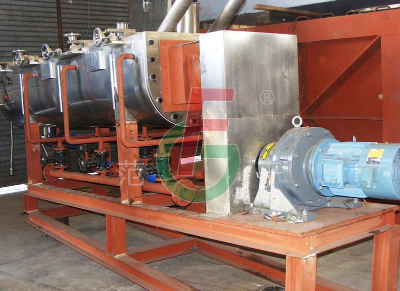 该机适用于处理各种膏糊状,粒状粉状等热稳定性好的物料,在特殊条件下也可干燥热敏性物料及在干燥过程中回收溶剂。加热介质可采用蒸汽,热水,热油等。典型干燥物料有:碳黑,碳酸钙,石膏,粘土,尼龙和聚脂片,聚乙烯,聚丙烯等。