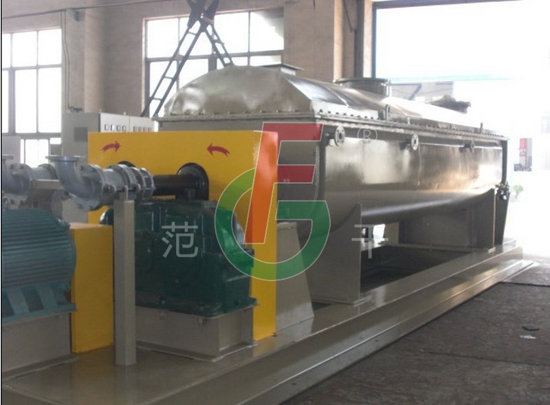 空心桨叶式干燥机是一种传导加热的低速搅拌型干燥机。在干燥器筒体上设置夹套,空心轴上设置空心浆叶,在其中通热载体,湿物料在搅拌浆叶的搅拌下筒体及浆叶热表面进行充分热交换,以达到干燥的目的。